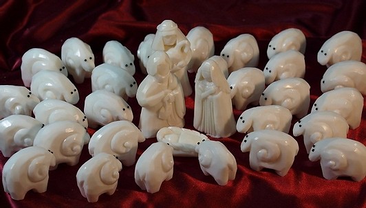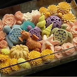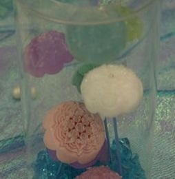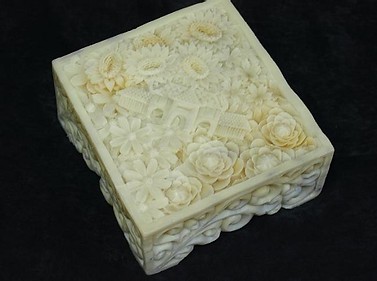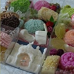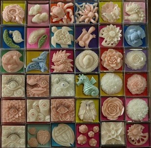 「ラプンツェル」 マルセイユ石鹸は内部が固まるのに時間がかかるため、ドライヤーで乾燥させながら、彫りました。 |