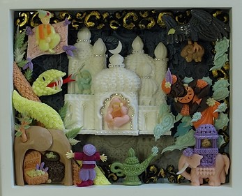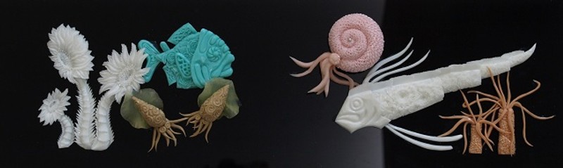 「ジュラ紀にワープ」石鹸を張り付けたアクリル板を3枚重ねることで、奥行きを出してみました。 |